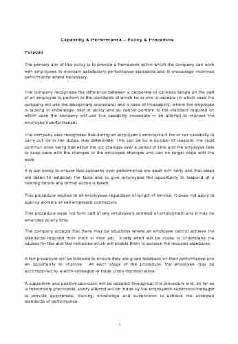 The Capability and Performance Policy & Procedure contains the following clauses: